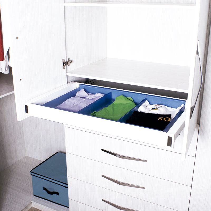 Módulos de gavetas, entrepaños, colgadores y zapateras
