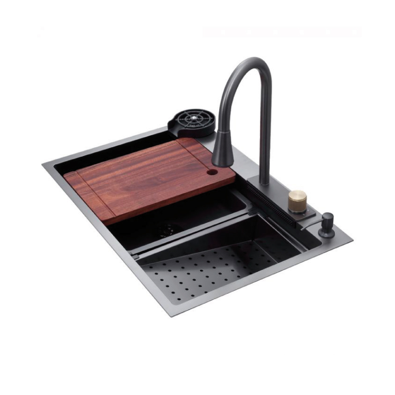 • Tapa redonda negra con escurridor de 114 mm con tubo de desagüe 1,5 pulgadas