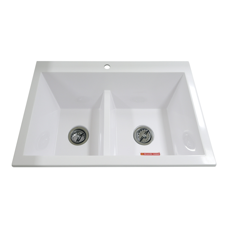 • Fregador de dos tinas color blanco brillo