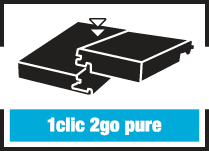 El H2O Floor se instala en un abrir y cerrar de ojos gracias al innovador sistema de montaje 1clic2go Pure que prescinde completamente de adhesivos plásticos.