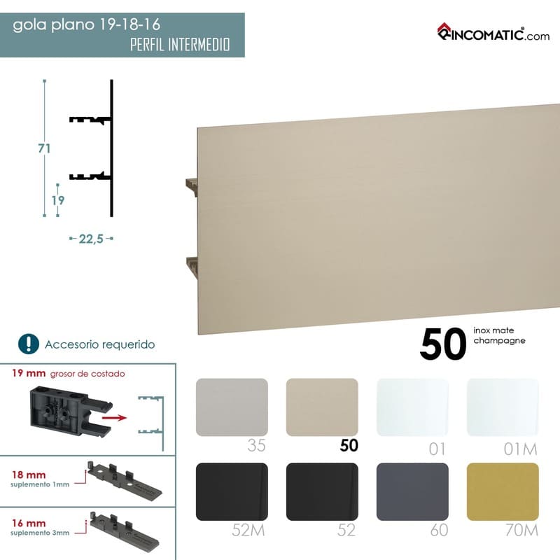Tirador de Perfil Gola Intermedio Inox Mate F-0021-1467